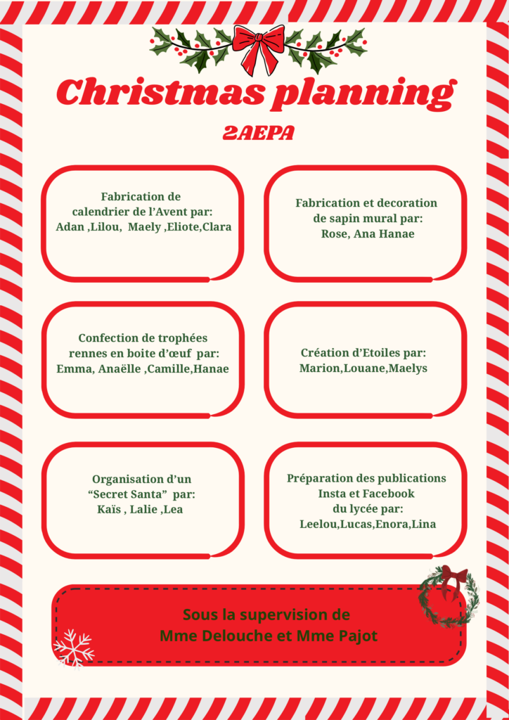Noël avec la classe 2AEPA ( Seconde Bac Pro Animation Enfance et Personnes Agées ) à partir du 24 novembre !