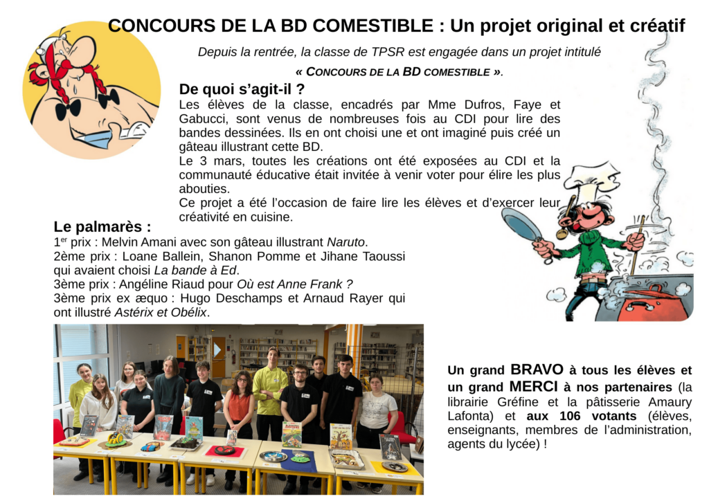 CONCOURS DE LA BD COMESTIBLE : Un projet original et créatif