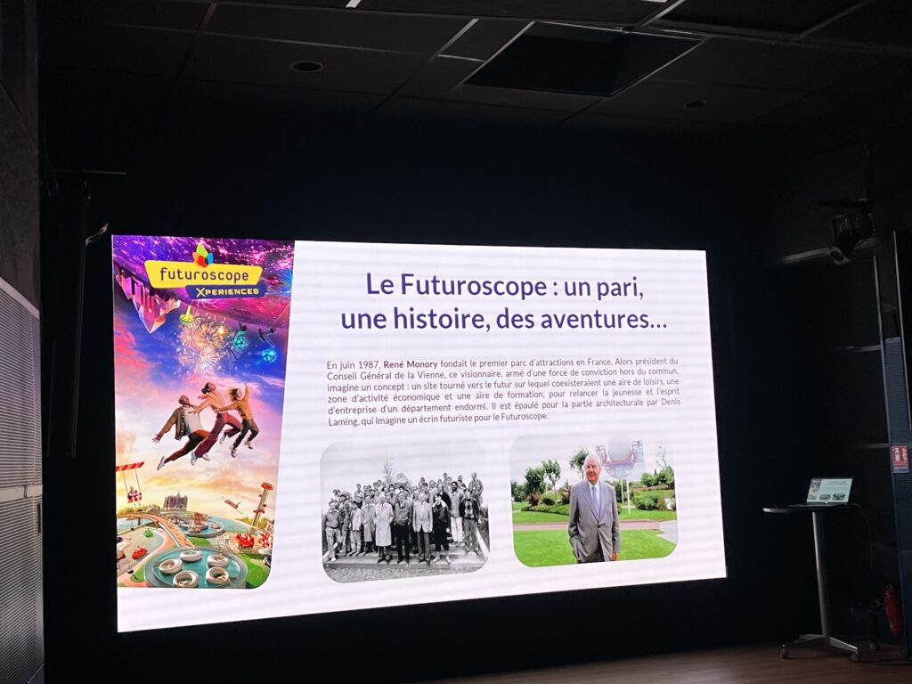 Cette expérience à été non seulement une immersion dans l’exploration des univers scientifiques, technologiques et de l’innovation à travers des attractions pédagogiques et interactives, mais aussi l’occasion d’assister à une présentation dynamique de l’entreprise « Fututroscope Xpériences », mettant en lumière son histoire, son modèle économique, ses stratégies commerciales, ainsi que ses opportunités de recrutement en lien avec nos formations.