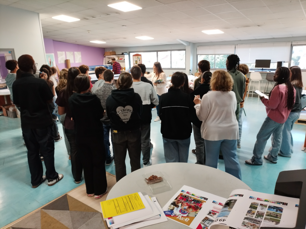Les élèves de 2GATL1 ont bien aimé les explications sur les métiers et les différentes techniques d’impression (numérique ou offset). Ils ont trouvé que le personnel a été à l’écoute de leurs questions et que l’imprimerie faisait de beaux produits (brochures, affiches, dépliants, cartes, livres, revues…).